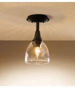 Product Descriptionp/pTraditional Semi Flush Mount in Natural Iron with Soft Amber glass from the Trumpet Collection by Hubbardton Forge. Dimensions: 10.60 H 5.90 W