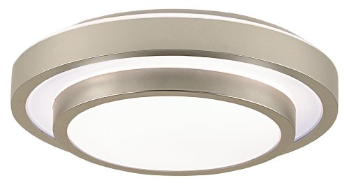 19587-011 Size: 16" W x 16" D Matte chrome softly rims a unique double layered flush mount. The overlaid rings provide complex and fulfilling illumination. Lucid ivory white glass is a soothing selection that disseminates the light abundantly. Features: -One Light Flush mount. -Silver finish. -Available in 13.25'', 16'' or 17.5'' width sizes. -Black fabric shade. -Lucid ivory white glass. -Matte chrome softly rims. -Overlaid rings. -cETLus certified. Specifications: -13.25'' Flush mount accommodates (1) 22W T5 fluorescent bulb (included). -16'' Flush mount accommodates (1) 32W